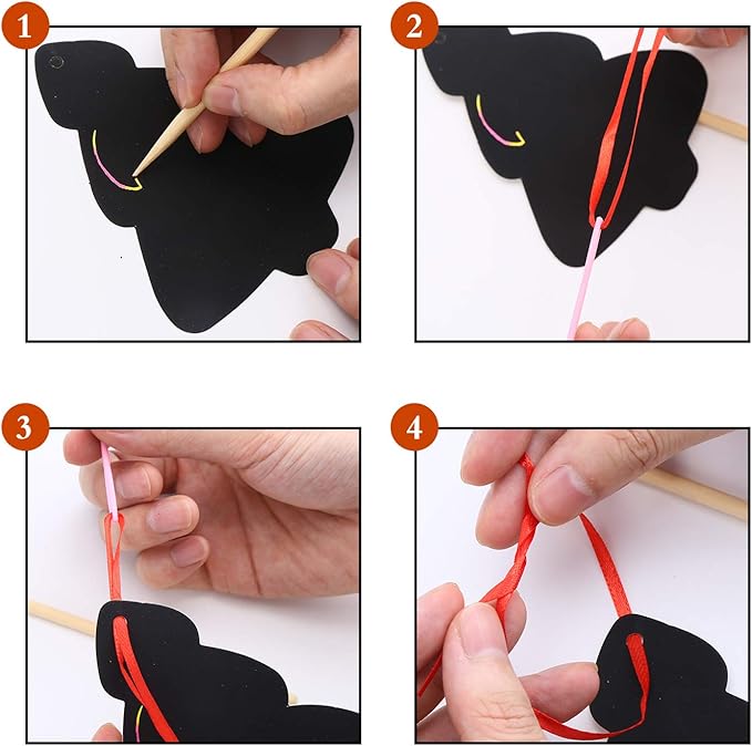- Easy to Play: Only use the wooden stylus to draw on the smooth black surface. Use your imagination to scrape out different patterns to your ornaments and hang them with random cords