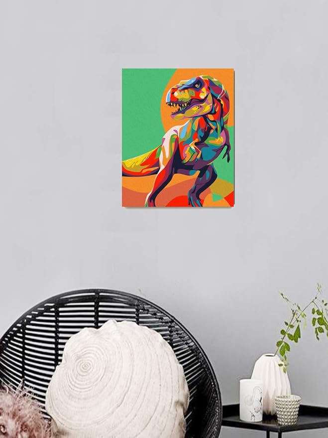 Elftoyer Paint by Numbers for Kids & Adults & Beginner, DIY Canvas Painting Gift Kits for Home Decoration - Colorful Dinosaurs 16 x 20 inch (Without Framed)