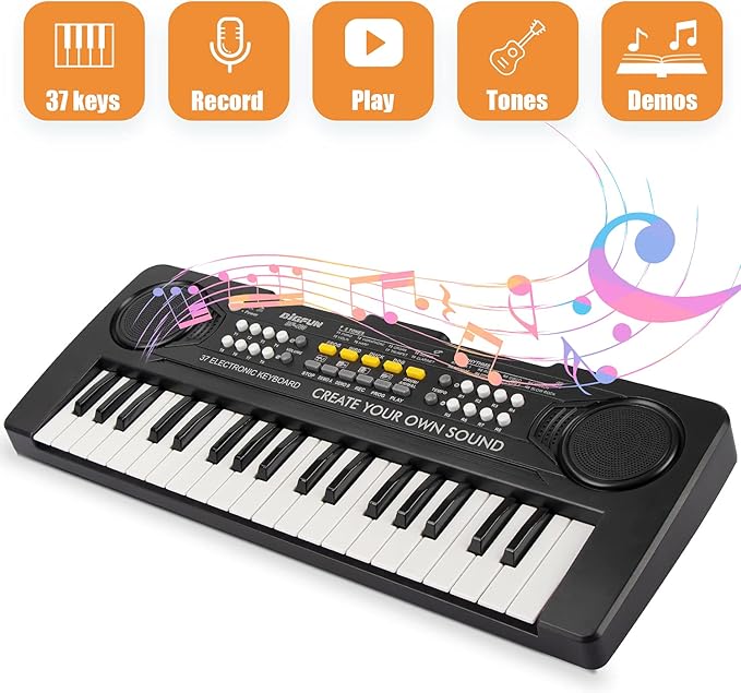 Kids Keyboard Piano, 37 Key Portable Electronic Piano for Kids, Digital Music Keyboard Educational Toys for 3 4 5 6 7 8 Year Old Girls Boys (Black)