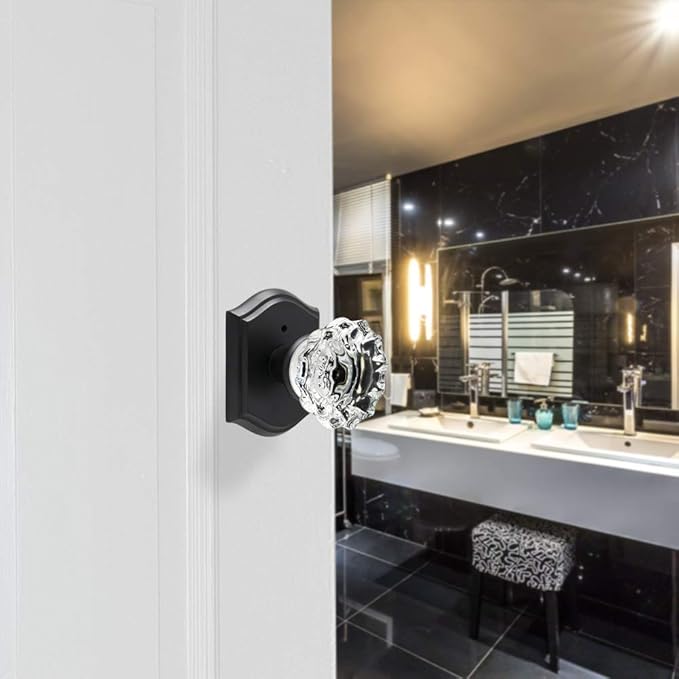 Glass Door Knobs Interior with Lock, Vintage Privacy Crystal Door Knobs for Bedroom Bathroom, Matte Black