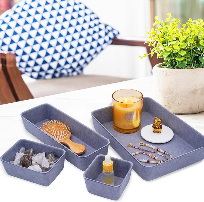 - 【Sustainable material】 recycled felt with a comfortable touch feeling. No noise like plastic keeps stuff from flying around in the drawer. The soft felt material protects your valuables from scratches while adding a touch of sophistication to any space.