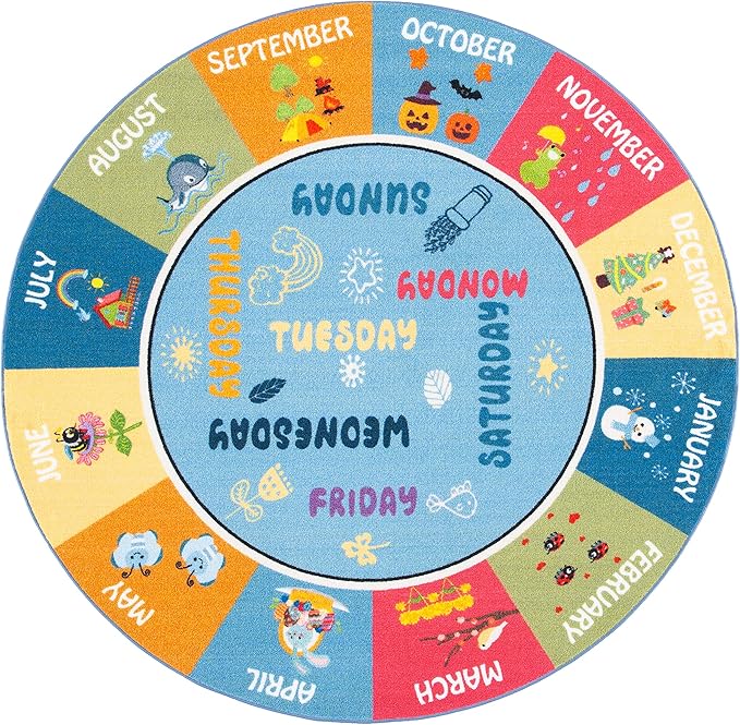SAFAVIEH Kids Playhouse Collection Area Rug - 5' Round, Blue & Green, Non-Shedding Machine Washable & Slip Resistant Ideal for High Traffic Areas for Boys & Girls in Playroom, Nursery (KPH224M)