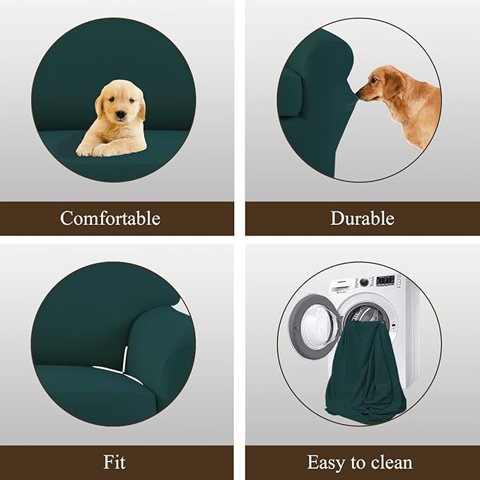 Easy-Going 4 Pieces Microfiber Stretch Recliner Slipcover – Spandex Soft Fitted Sofa Couch Cover, Washable Furniture Protector with Elastic Bottom for Kids, Pet(Recliner, Deep Teal)