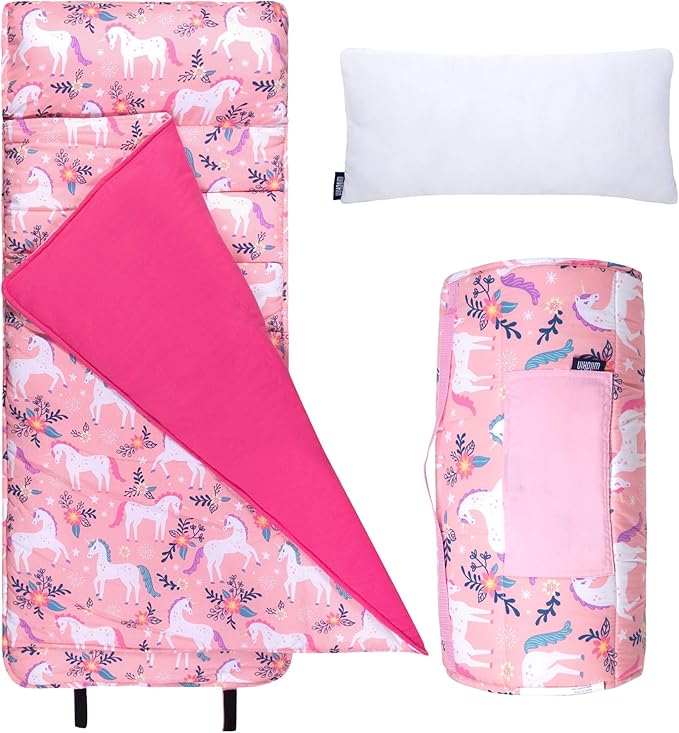 - TRAVEL-FRIENDLY DESIGN - Naptime can happen anywhere with Wildkin's daycare nap mat. Each travel-friendly design original kids napping mat features a roll-up design, complete with hook and loop fastening straps and a convenient carrying handle.