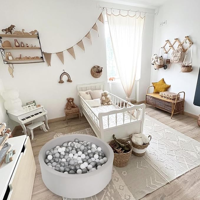 - FULL OF FUN - Bright colors will attract your children and keep them entertained for hours. Grasping, throwing, even shooting a basket in the pool. You can also choose match the color to your playroom decor.