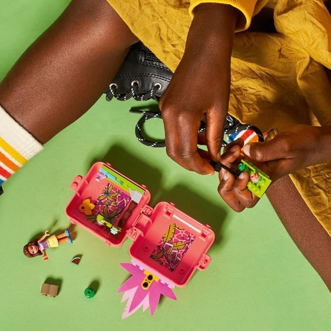 - Contains a mini character from the popular LEGO Friends Olivia a toy flamingo of 1 of 4 possible colors, a frog figure, a buildable scene of a lake, a camera, a watermelon and a watermelon slit.