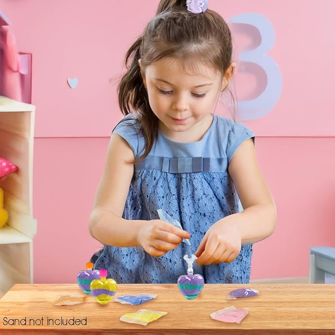 - A LOOK THEY’LL LOVE: The necklace cords come in 4 colors - red, blue, purple, and green. Once the heart-shaped bottles are filled with sand, these beauties will turn into eye-catching Valentine’s Day gifts for kids.