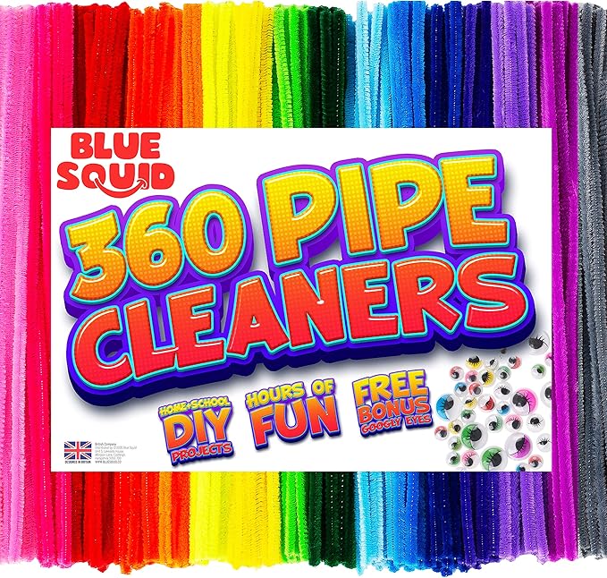 - π π°π²π¬ π©πππ₯ππ‘π§ π£πππππ¦: Inspire creative fun with Blue Squidβs 460-Piece Craft Set, including 360 Chenille Stems and 100 Googly Eyes! The stems feature 35 stunning assorted colors (25 classic + 10 glitter), each measuring 12" (30cm) coming in vibrant colors like red, green, gold, white, yellow & more! The included googly eyes add a fun touch to your creations, making them come to life! Perfect for crafting animals, bracelets & more, this set sparks creativity & imagination.
