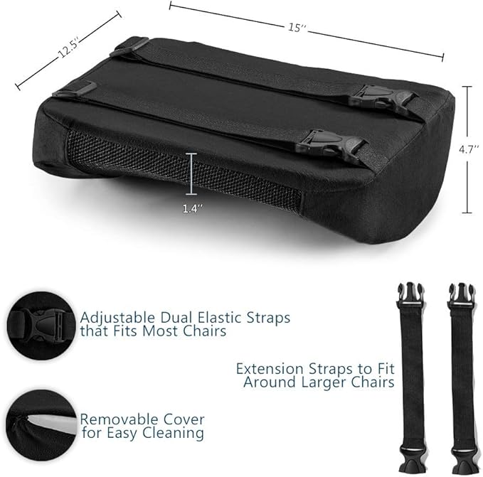 - 3D Ventilative Mesh & Adjustable Strap - Fits many chairs with elastic strap. Breathable and removable cover for easy cleaning. ComfiLife Lumbar Pillow comes with an adjustable strap however it may not fit some contoured seats, car seats and large office chairs. Product Dimensions: 15 x 12.5 x 4.7 inches
