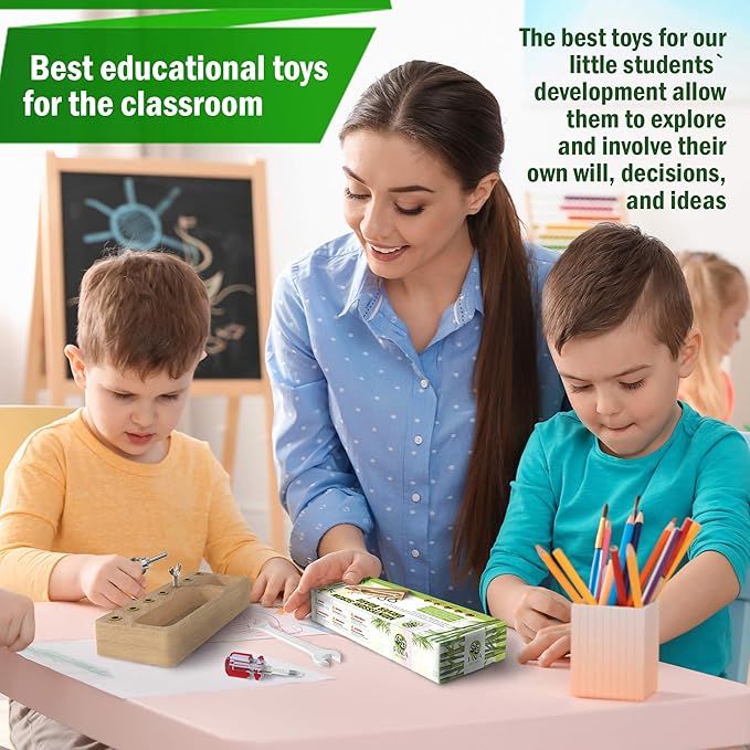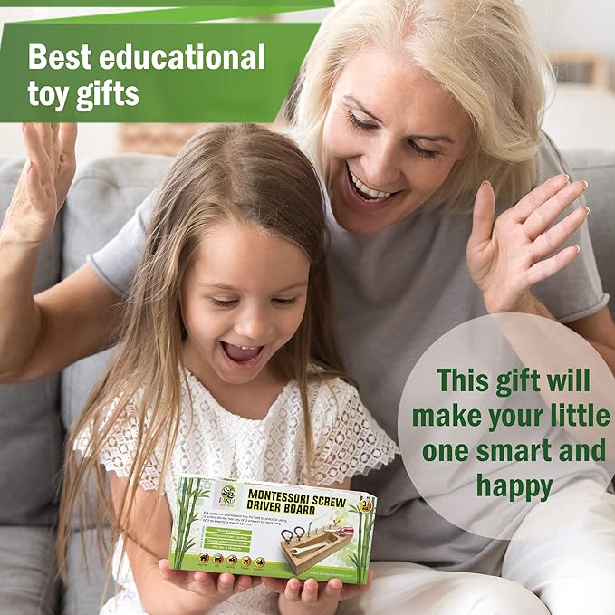 - 𝗡𝗔𝗧𝗨𝗥𝗔𝗟 𝗔𝗡𝗗 𝗦𝗠𝗔𝗥𝗧 𝗧𝗢𝗬𝗦 - Crafted from environmentally friendly, natural wood, our solid Screw Driver Board is your long-time investment. Its beautiful and sustainable wood design along with the smooth corners and edges will perfectly fit in your child’s tiny hands and ensure safe and independent use. Besides teaching through playing, our board also helps to develop fine motor skills and allows exploring the bolt shapes and learn how to correctly use them