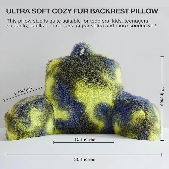 Fur Reading Pillow - Big Size 30x17x17 Inch with Premium Stuffing, Adult & Children Backrest Pillow with Arms, Bed Wedge Pillow for Headboard, Back Support Pillow for Sitting Up in Bed