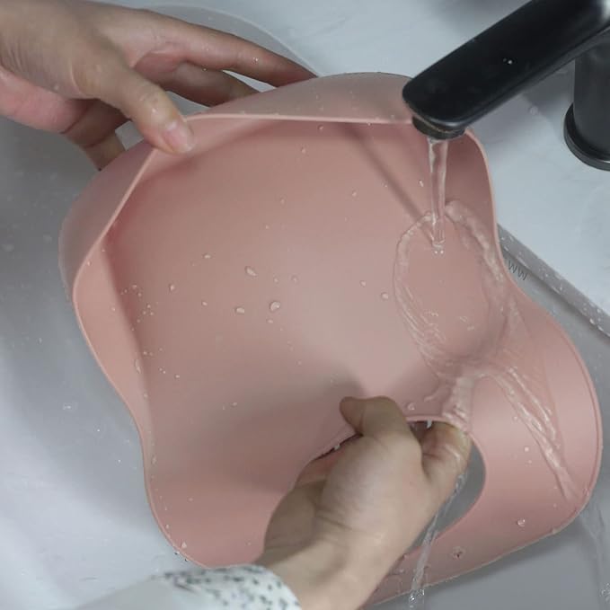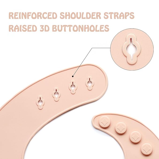 - SILICONE BIB – The silicone baby feeding bib has a big food catcher that could stay open. So, it could catch most of the falling foods & drinks. The tightening buttons secure the silicone bibs well and make it harder for toddlers to pull it apart. It fits for the little ones in age of 6 ~ 36 months.