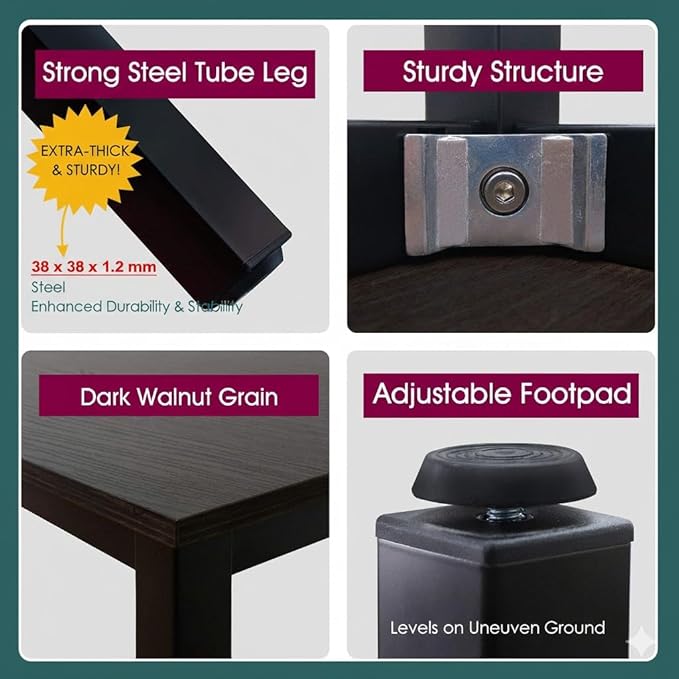 - Powerful Stability and Durability - This product features a unique structure and high-quality materials, especially the 1.2mm thick steel square table frame, providing exceptional stability and durability. This ensures reliability and longevity during use.