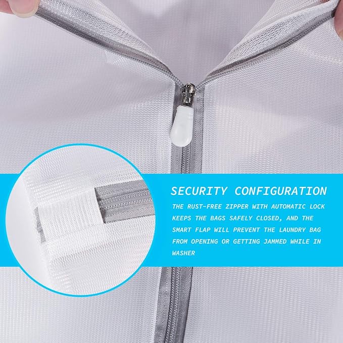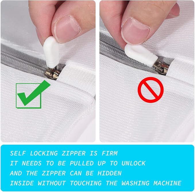 - 【Auto-lock Zipper,Anti-cracking】: This big zipper mesh laundry bag has a high quality rust-proof zipper with a safe side cover,it is aoto-locked zipper can prevent the delicate clothes wash bag opening when it running,and the safe side cover can protect your washing machine,avoid zipper scratch the machine and also extend the service life of zipper.