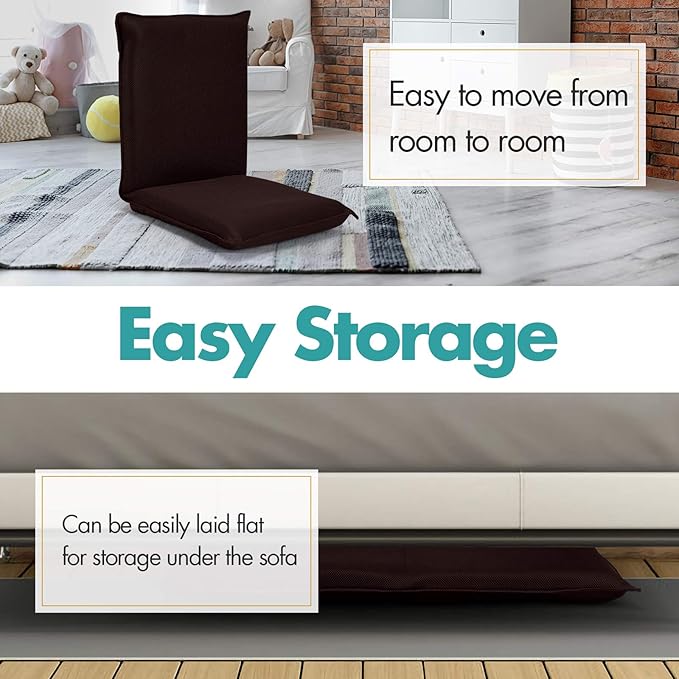 S AFSTAR Adjustable Floor Chair, Cushioned Lounger Recliner with 6-Position Comfortable Back Support & Thick Padded, Lazy Sofa Floor Gaming Chair, Floor Seat for Gaming Reading Meditation (Coffee)