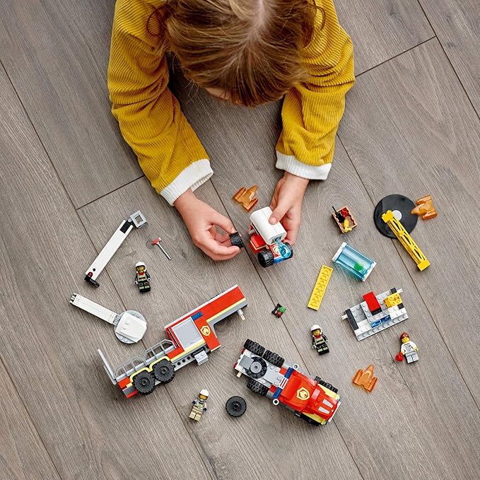- This set has a cool toy fire truck with functioning cherry picker, a science lab setting with stackable LEGO flames, plus LEGO City TV characters Toastie the firefighter robot, Bob and Feldman