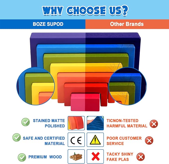 - SAFE AND STURDY DESIGN - Crafted from non-toxic wood with a smooth, burr-free finish and safe water-based paint, our wooden montessori toys-prioritize your child's safety. The thick, large size of each block ensures they are easy for little hands to grasp, preventing any concerns of swallowing. Enjoy peace of mind while your child explores.