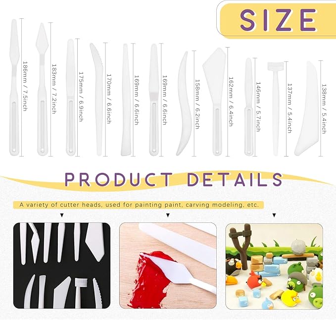- ❤ 11Pcs White Plastic Crafts Clay Modeling Tool ------ Clay tool set for working with clay, plasticine and other modeling compounds, Sturdy plastic tools can be used with all types of clays Consists of 14 mini double ended tools, The curved end contours delicate feature, Great for shaping and sculpting at school and home.