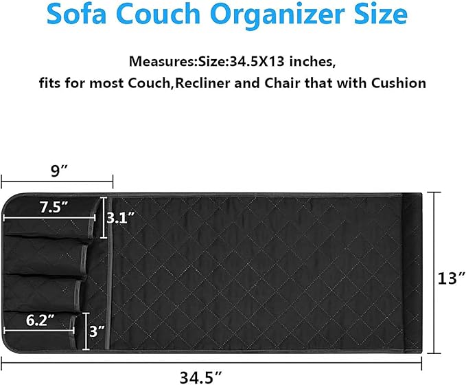 - Easy to Install: Place the end with the organizer inside and underneath your couch cushions to secure the organizer in place. If it’s too long and you can roll up the end side of the organizer accordingly then put it under the seat. Stays in place nicely.