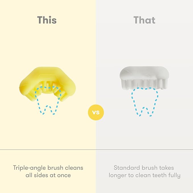 - TRIPLE-ANGLE: Soft, triple-angle silicone bristles massages all sides of gums at once