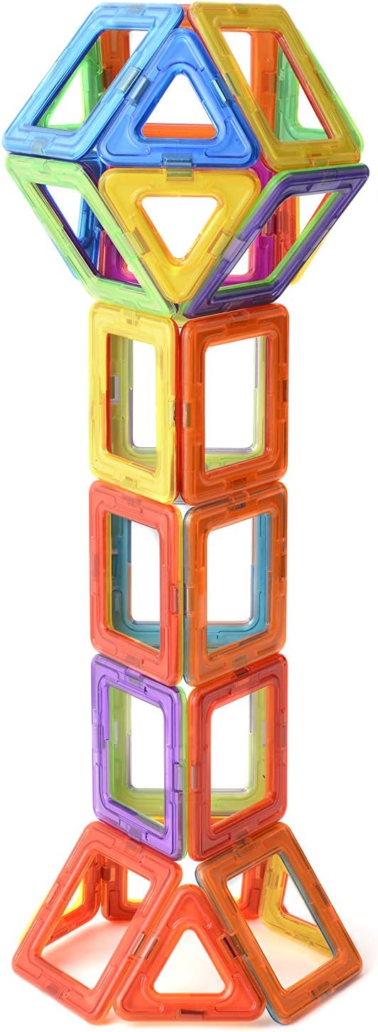 - Creative Design: The magnetic blocks allow for both 2D and 3D construction. Kids can create flat patterns or 3-dimensional structures like pyramids, houses, towers, and vehicles, which can provide hours of entertainment.