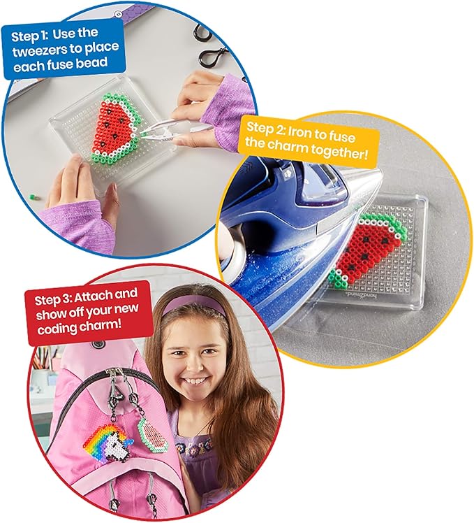 hand2mind Coding Charms, Coding for Kids 8-12, Fuse Bead Iron Craft Kit, Make Your Own Keychain, Coding Kits for Students, Computer Programming for Kids, STEM Activities, Educational Science Kits