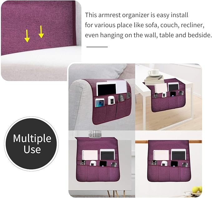 - Easy to Install: Slip the end side of the organizer under the sofa seat , then cover the sofa armrest. If it’s too long and you can roll up the end side of the organizer accordingly then put it under the seat.