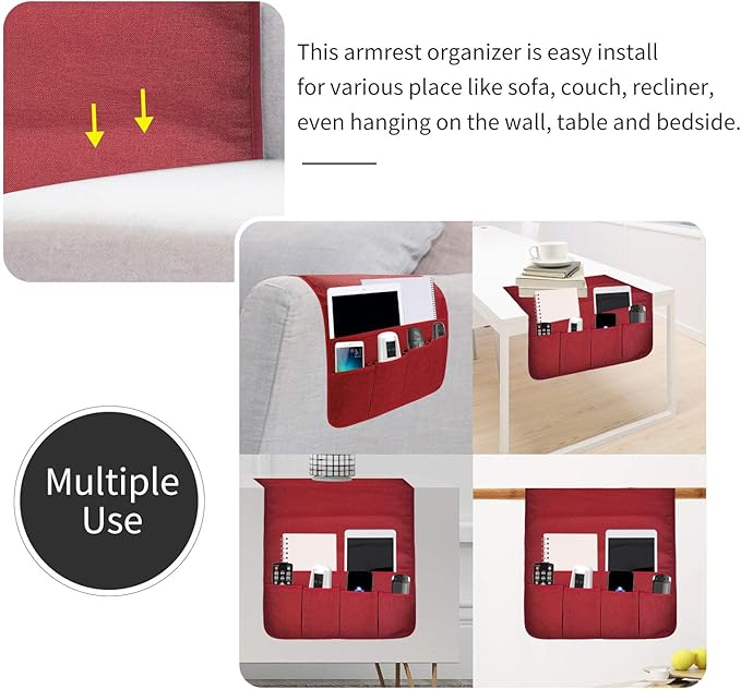 - Easy to Install: Slip the end side of the organizer under the sofa seat , then cover the sofa armrest. If it’s too long and you can roll up the end side of the organizer accordingly then put it under the seat.
