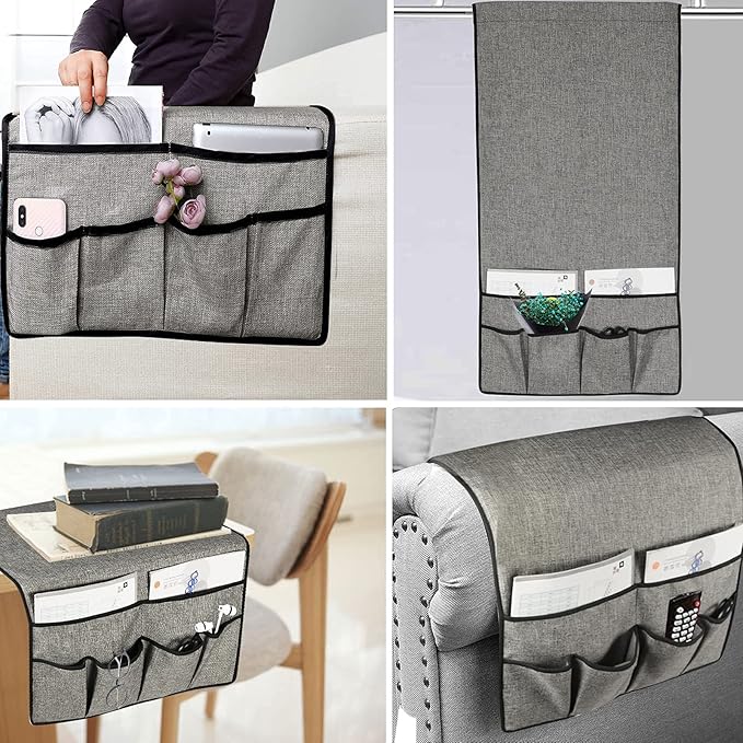 - Save Space Keep Clean: Armrest organizer storage 6 pockets for sofa recliner couch armchair tablet fit magazines, books, iPad, glasses, mobile phones, TV remote controls, bottles, make them always in reach with this armchair caddy. Function various places like living room, bedroom, office and coffee tea table