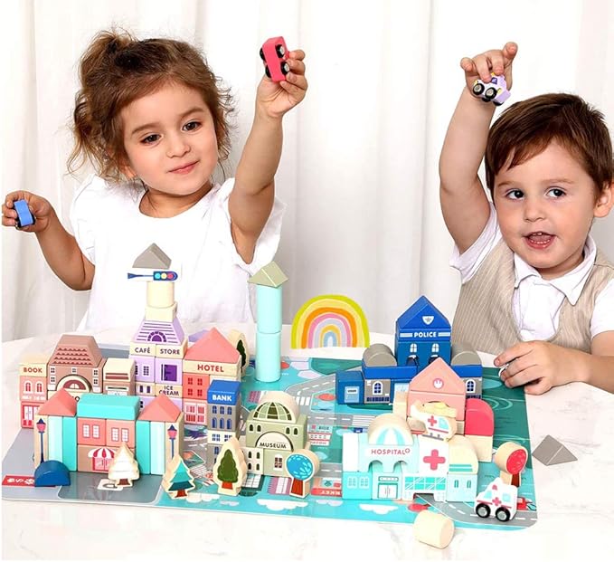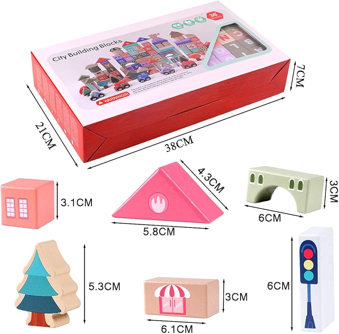 - Safe and Comfortable:Made of high-quality solid wood and colored with non-toxic paint, it's safe for kids licking or biting, also, the building blocks toys feature rounded corners and edges, are smooth to touch and play with.