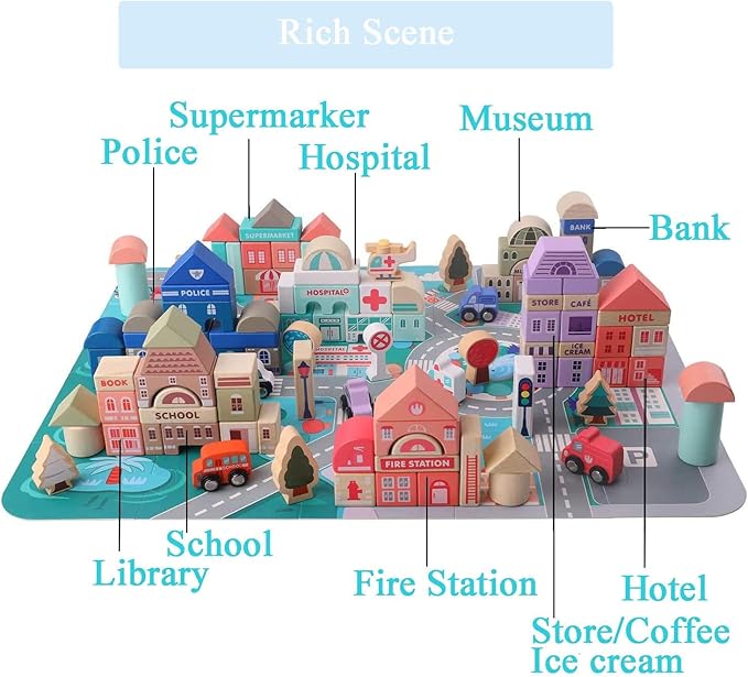 - Ideal Gift for Birthdays and Holidays:This wooden building blocks toy set allows kids to explore the world by creating something new with their own hands, and when they build the construction together with their friends, they will learn team collaboration.