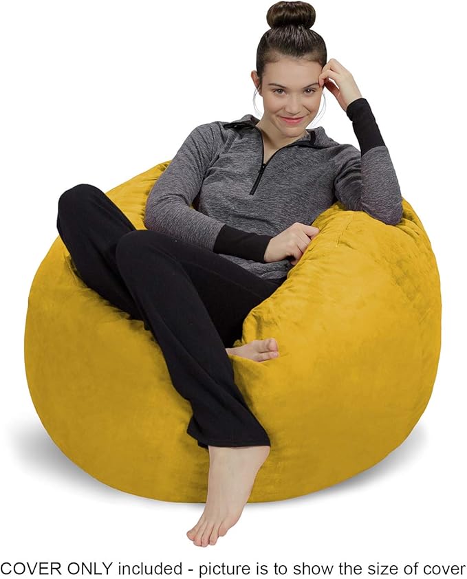 Sofa Sack Bean Bag Chair Cover Only, for Adults and Kids, Without Filling Comfy Fluffy Round or Oval Beanbag Chair Cover Replacement, Lazy Sofa Cover for Reading Chair or Floor Chair, 3 Foot, Lemon