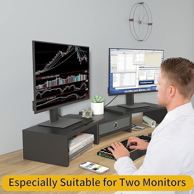 - 【Perfect Storage with Drawer 】Our computer monitor riser includes 13 inches practicality slide-out drawers, for storing items like post-it notes, writing utensils and mobile devices
