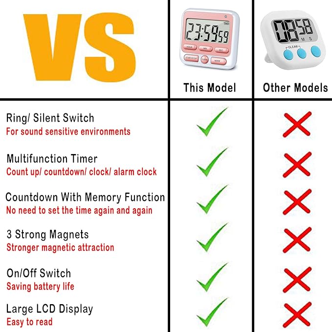 - Silent Mode & Ring Mode: Available for More Situations, We all dread the situation where our timer rings in the middle of a meeting, class or sound sensitive environments, mute & flash mode is the solution to that problem