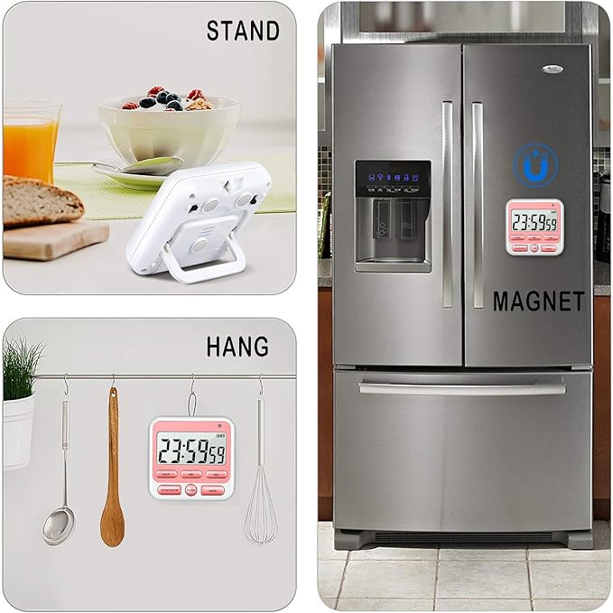 - Magnetic Back, Retractable Stand and Hook for Hanging: The kitchen timers magnetic is convenient to place in three ways, especially with its 3 STRONG MAGNETS, which works well on metal surfaces