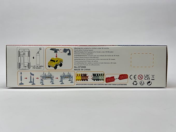 - Electronic Construction Racing Car with 3 Led Lights - The construction play set come with a excavator race car and a ladder race car. They required 1x1.5V AA batteries, not included. The light will automatically flash with blue & red when the car is driving. It’s very cool when kids play it under the dark.The joints in the back of the cars are also moveable. Bring kids no limit fun and keep they away from video games.