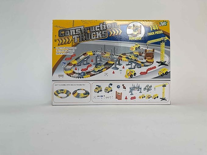 - Diy Your Construction Themed Race Track - The package come with 144pcs flexible tracks and numberous accessories.It is easy to assemble and take apart to store. The flexible tracks can be twisted, turned, flexed to layout endless possibilities shapes to inspire your child’s creativity & imagination and exercise hand-eye coordination.