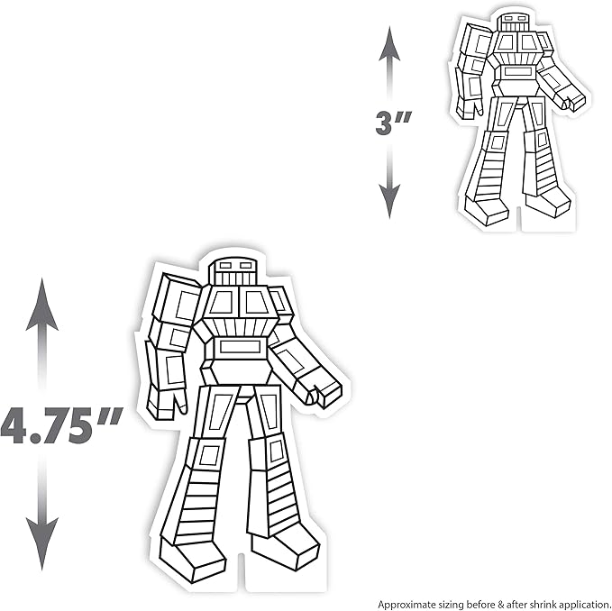 - 51- piece set includes 21 preprinted and precut Shrinky Dinks, 8 color pencils, 8 stands, 6 pipe cleaners, 2 key chains, 6 magnets, and instructions.