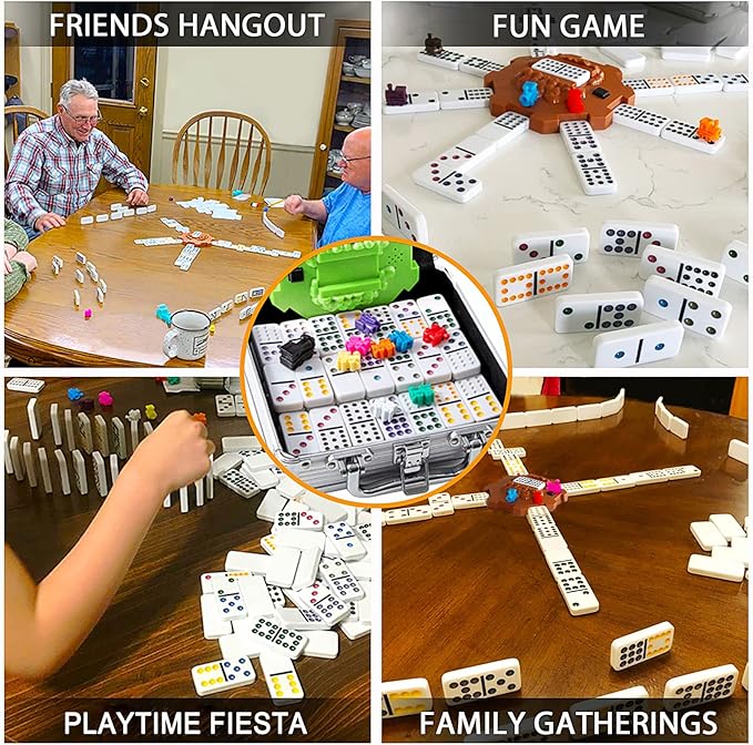 - SAFE AND EXQUISITE: Dominoes set is made of environmentally friendly materials without worrying about safety. The brightly colored dots are more attractive and easy to read& calculate in the game. People who enjoy board games and spending quality time together will definitely need this dominoes set.