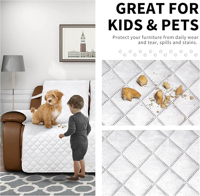 Easy-Going Oversized Loveseat Recliner Cover, Reversible Couch Cover for Double Recliner, Split Sofa Cover for Each Seat with Elastic Straps for Kids, Dogs, Pets(Oversized 2 Seater, White/White)