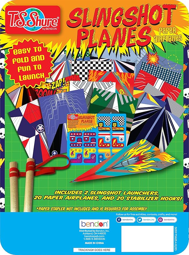 Bendon TS Shure Slingshot Airplanes Educational Activity Tin with Stabilizer Hooks and Slingshots 50511