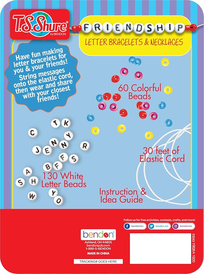 - INCLUDES: 130 white letter beads, 60 colorful beads, 30 feet of elastic cord, and an illustrated ideas sheet