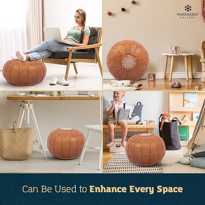 - Sustainably Sourced and Strong Stitches that Lasts - We use carefully selected goat hides, treated with natural dyes and dried out under the sun. Vegetable tanning means the leather pouf won't have any lingering bad smells. Zero chemicals are used in the fabrication process