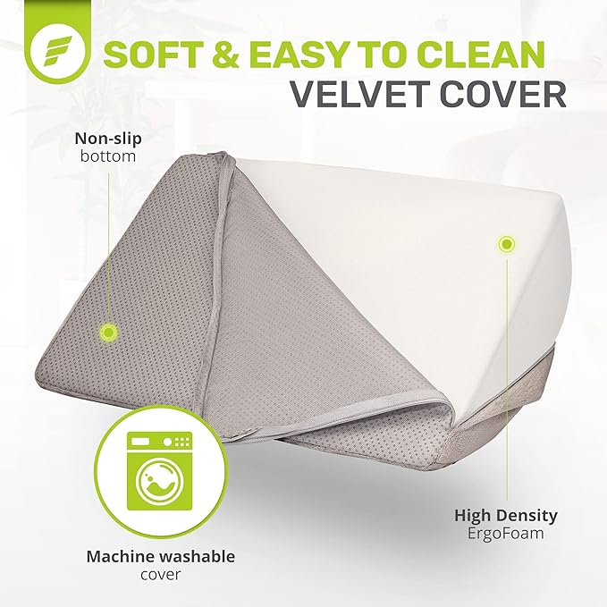 - 2 FOOT RESTS IN 1! Larger and wider than other foot rest stools, our ergonomic foot rest under desk design features an ARCHED STRUCTURE for COMFY SUPPORT throughout the day. WANT TO GET YOUR FEET & LEGS MOVING? Flip over your foot pillow to transform it into a ROCKER FOOT REST for increased circulation and muscle movement. With our foot stool under desk cushion, you’ll notice IMPROVED POSTURE and less back, hip & leg pain. To clean, simply remove its velvet cover and TOSS IT IN THE WASH.