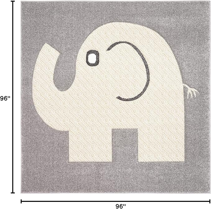 SAFAVIEH Carousel Kids Collection 8' Square Grey/Ivory CRK165B Elephant Non-Shedding Nursery Playroom Area Rug