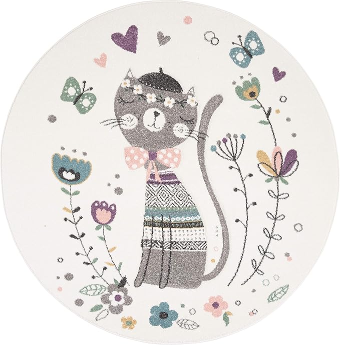 SAFAVIEH Carousel Kids Collection 6'7" Round Ivory/Pink CRK187A Cat Non-Shedding Nursery Playroom Area Rug