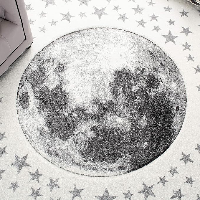 SAFAVIEH Carousel Kids Collection Area Rug - 5'3" Square, Ivory & Grey, Non-Shedding & Easy Care, Ideal for High Traffic Areas for Boys & Girls in Playroom, Nursery, Bedroom (CRK135A)