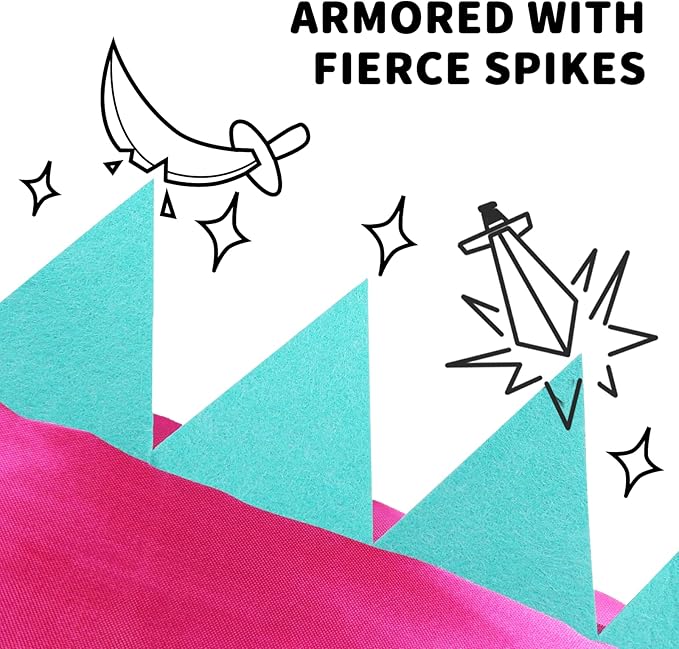 - 4-Inch Armor: When Jack adorns himself with a dinosaur cape, mask, and wristbands of this remarkable dino costume, he undergoes a remarkable metamorphosis. 4-inch-long felt sharp spikes, not only enhance the authenticity of the costume but also allow Jack to use them to pierce through adversaries or simply turn around to deter any would-be foes
