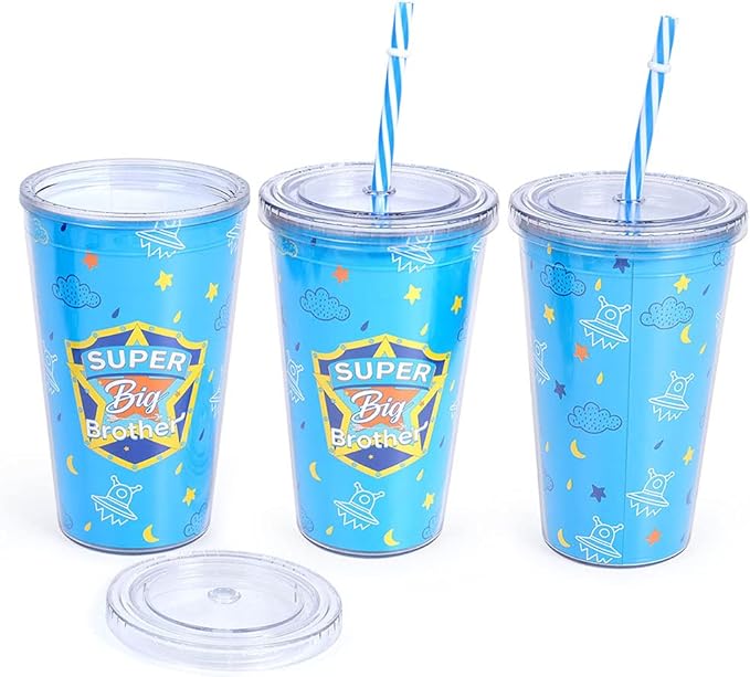 - Fun & Useful Super Big Brother Gift Set:Includes a Super Big Brother double-imitated silk fabric soft cape, soft eye mask, silicone dinosaur slap bracelet, badge necklace, Super Big Brother drawstring backpack, dinosaur plush keychain, Insulated Plastic Tumbler with straw, gift box. This a great gift for a new or soon-to-be big brother. We need to pay special attention not to ignore the elder brother when a new baby is coming, so we must let the elder brother feel his parents love him forever
