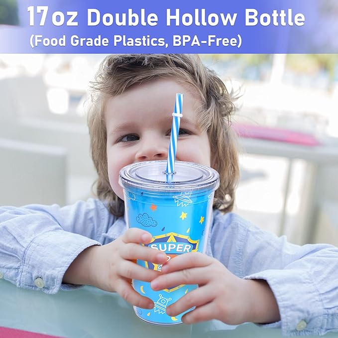 - Skin Friendly:The 17 oz bottle with straw is not a toy but real useful bottle. There is a cute paper design of a super big brother in the middle of 2 layers of plastic. Super soft simulation silk satin cape, soft felt eyemask, rubber unicorn bracelets. They are both skin-friendly